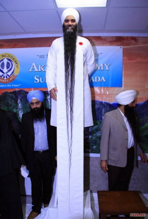 Борода Сарвана Синга из Канады составила 2,33 метра от кончика его подбородка до кончика бороды