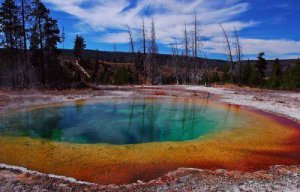 Это падение изменили состав бактерий, живущих вблизи от поверхности. Так и появилась желто-оранжевая окантовка жерла, которые ранее были только по самой периферии. В настоящее время, в зависимости от погодных условий, изменяется и температура источника, и изменяется цвет то в одну сторону, то в другую. Периодически смотрители парка предпринимают попытки очистить источник, но это приносит мало пользы.