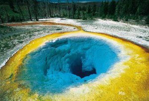 Это падение изменили состав бактерий, живущих вблизи от поверхности. Так и появилась желто-оранжевая окантовка жерла, которые ранее были только по самой периферии. В настоящее время, в зависимости от погодных условий, изменяется и температура источника, и изменяется цвет то в одну сторону, то в другую. Периодически смотрители парка предпринимают попытки очистить источник, но это приносит мало пользы.