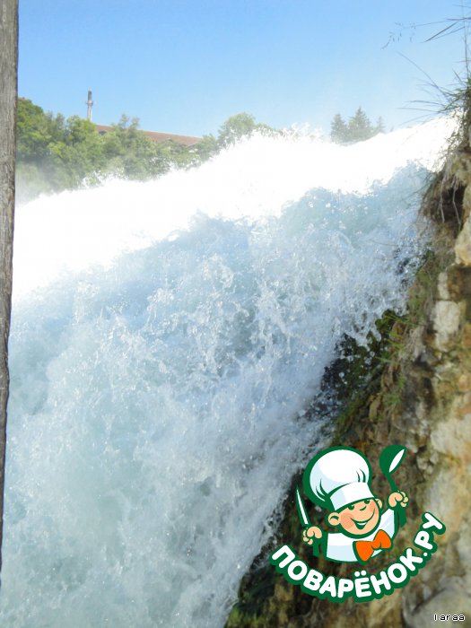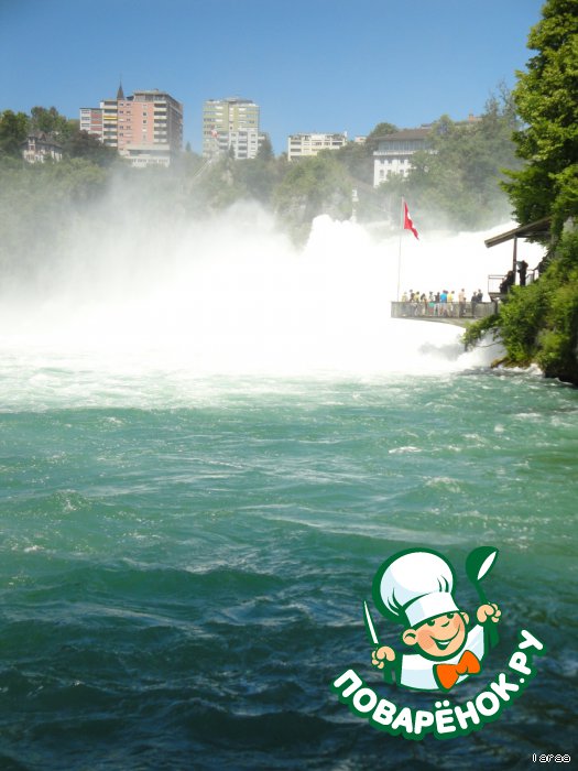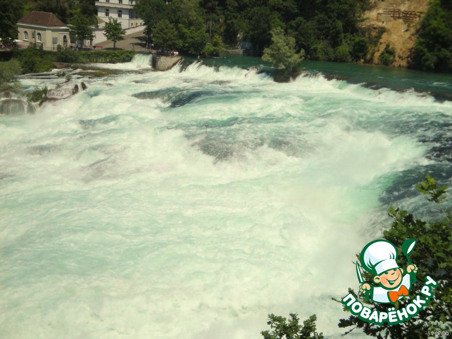 Рейнский водопад считается самым большим в Европе. Высота водопада его 23 м, ширина — 150 м. Жаль, что это чудо так быстро закончилось и начались опять будничные дни