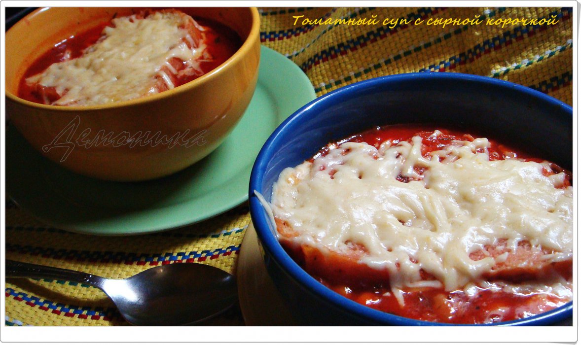 Из первый блюд - необыкновенно быстрый Томатный суп с сырной корочкой.