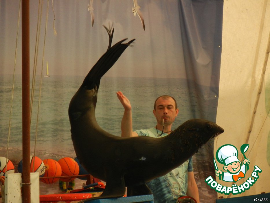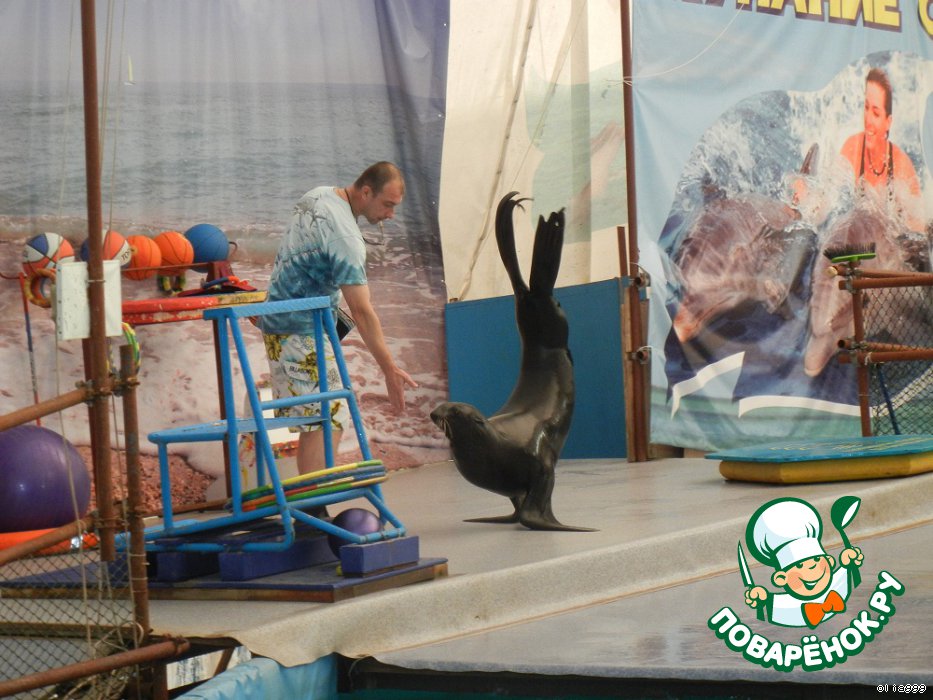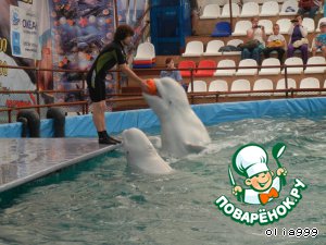 На представление в дельфинарий приглашают два черноморских дельфина-афалина, две белухи,морж и Северный морской котик.