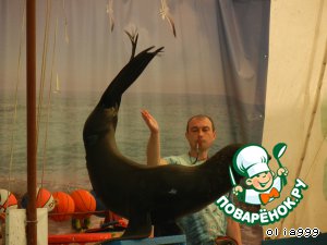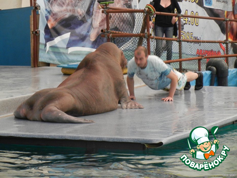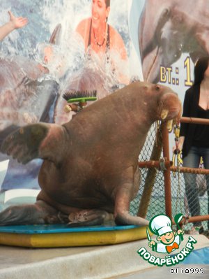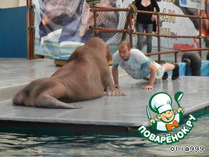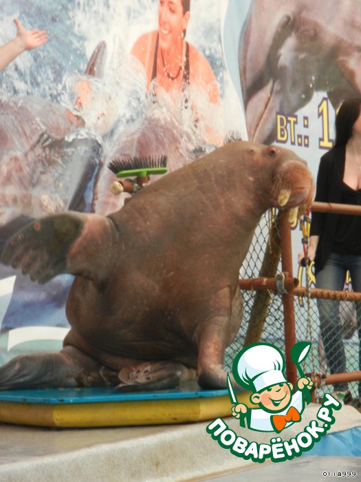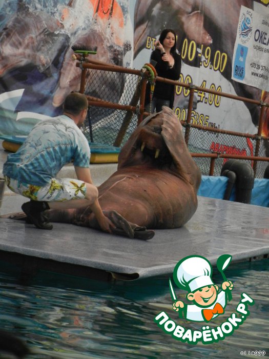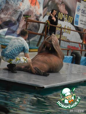 Настоящая гордость дельфинария-морж. Зовут его Пуфик, весит он 500 кг. Он тоже еще малыш,ему 7 лет.