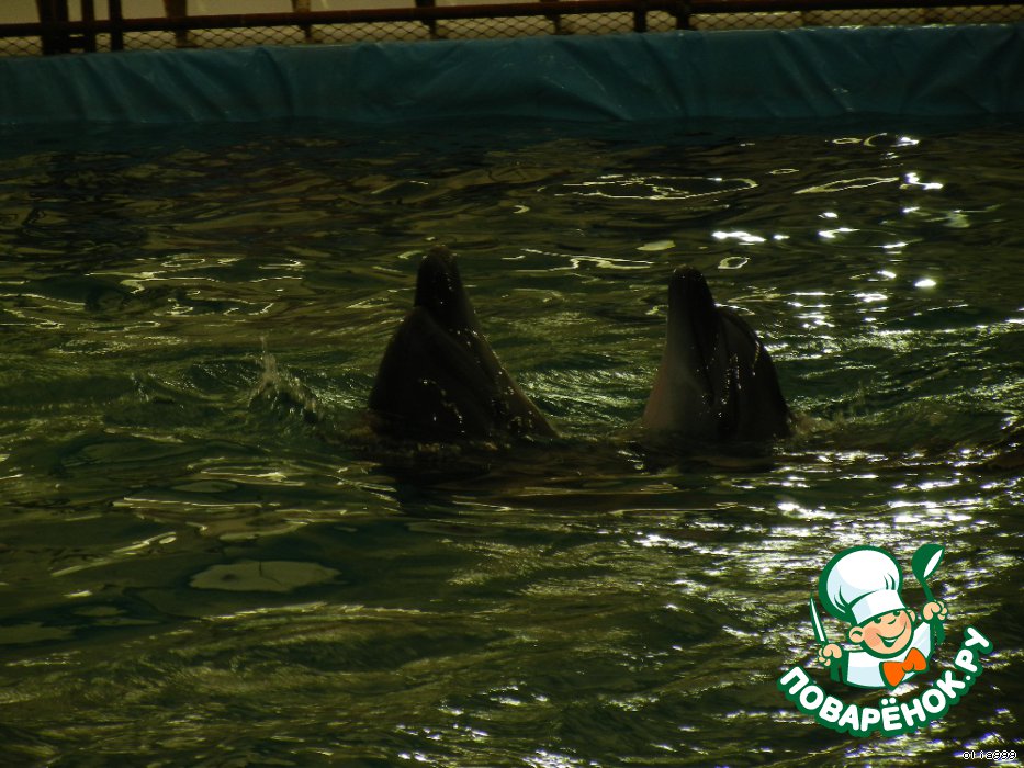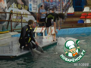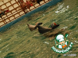 После шоу посетители дельфинария могут сфотографироваться с дельфинами. Что мы успешно сделали