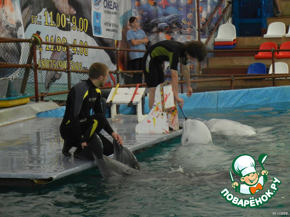 Дельфины поют, танцуют, показывают акробатические трюки и даже рисуют. У каждого посетителя есть шанс стать обладателям уникальной картины, нарисованной дельфинами. Рисунок продается с аукциона – его получает тот, кто готов заплатить большую сумму.