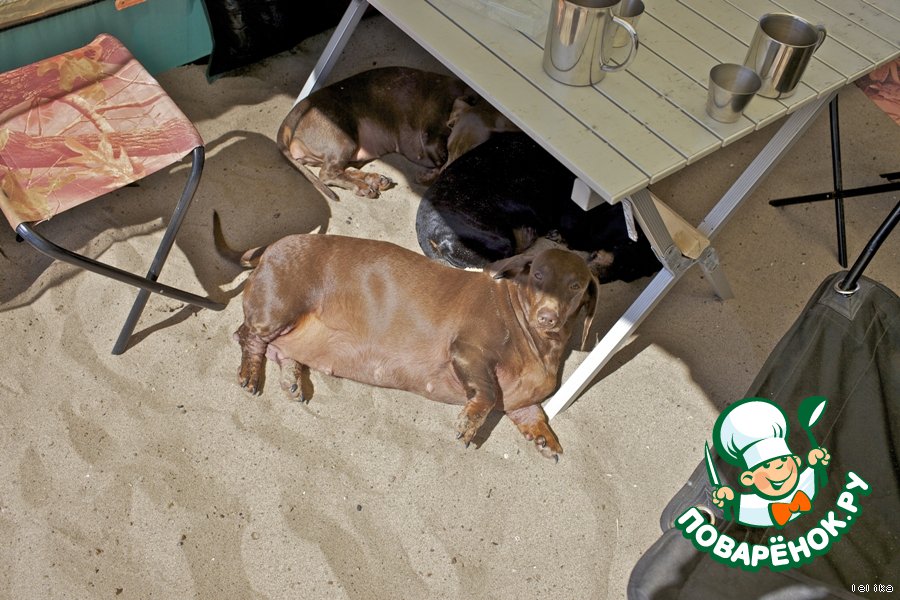 Таксики тоже ждут своей порции, правильно выбрав место дислокации - под столом!!!