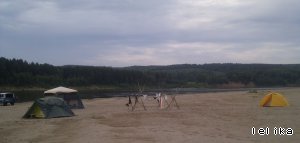 Между палатками - тренога, а где ж просушить вещи? Без нее никак!