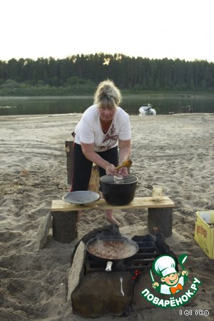 Накупавшихся, накатавшихся Лена кормит гречей с лосятиной: вкуууусно с дымком!