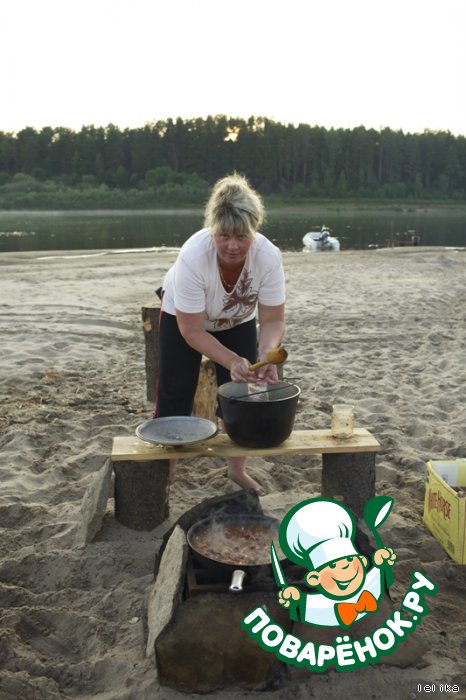 Накупавшихся, накатавшихся Лена кормит гречей с лосятиной: вкуууусно с дымком!