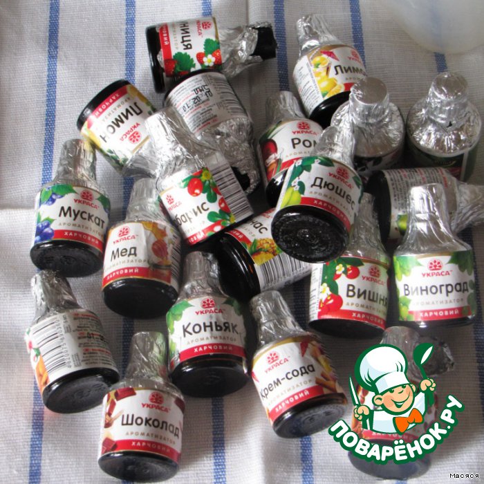 Огромное количество эссенций -ром, коньяк, клубника, кофе и т.д. Куда вот их использовать-не знаю