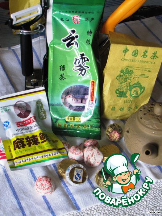 Разнообразные китайские чаи - пу-эр, сливочный, мятный, цветочный, жасминовый.