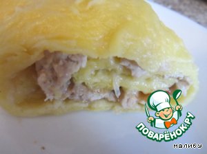 Теперь делаем рулет из второй половины теста: у мена начинка№2- филе+ сыр.