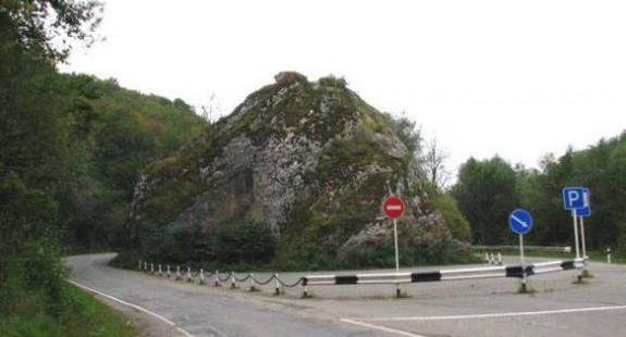 В Хаджохском ущелье, что между поселком Каменномостским и станицей Даховской прямо по центру дороги, лежит огромная каменная глыба - Казачий камень. Когда-то давным-давно она откололась от скального отвеса хребта Уна–коз, и скатилась в долину реки Белой, преграждая путь странникам.