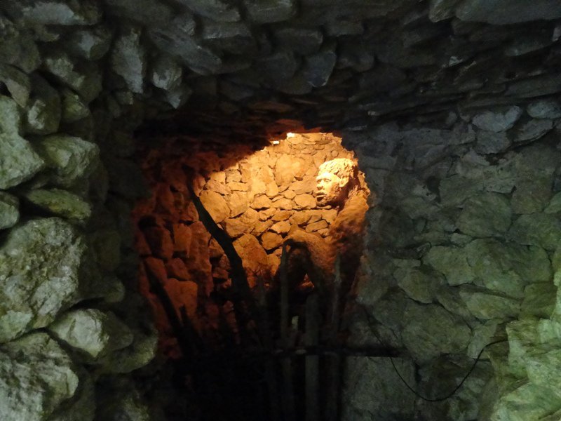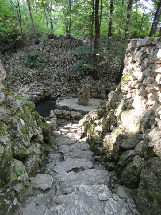 Территория которого представляет собой музей местных достопримечательностей здесь и ветряная мельница, и воссозданная пещера снежного человека, и дольмен, и пруд…. За символическую плату осматриваем владения "замка",заглядываем в подземный грот и видим… снежного человека, сидящего в гроте.