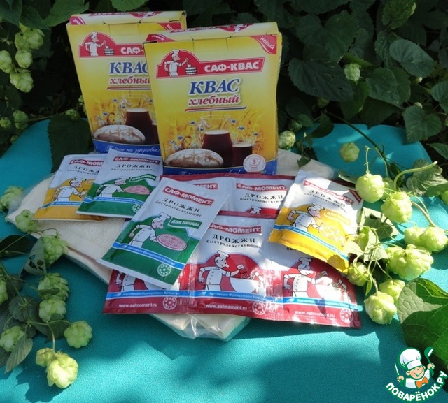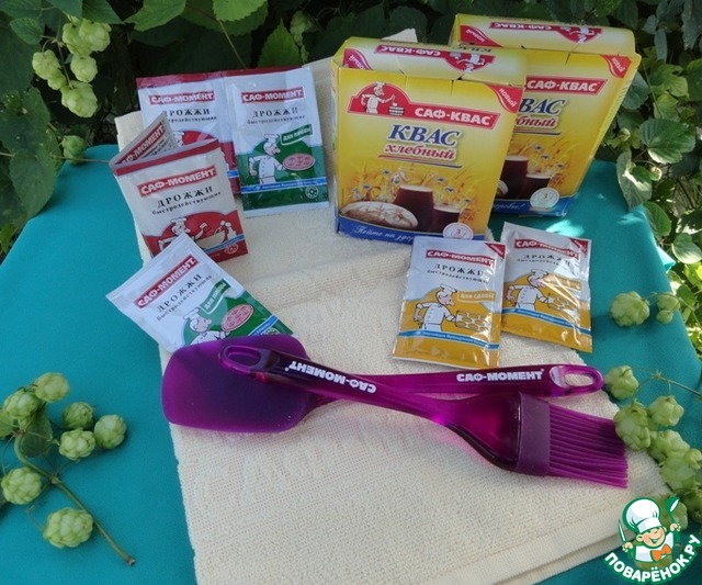 Это замечательная продукция от Саф-Момент: квас сухой хлебный -Саф-квас,быстро действующие дрожжи , мягкое фирменное полотенце с логотипом Саф-Момент и вот такие силиконовые кисточка и лопаточка .