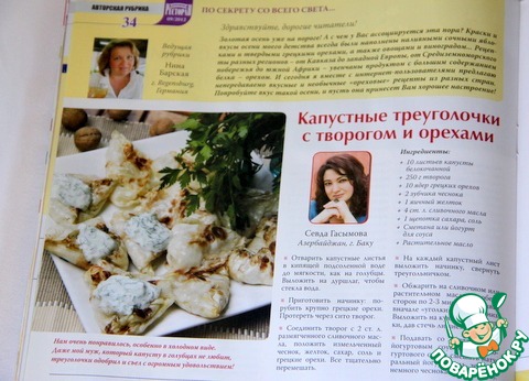 Авторскую рубрику сентябрьского номера "По секрету со всего света" я посвятила "ореховым рецептам". Спасибо авторам за интереснейшие и вкуснейшие рецепты! Мои поздравления!