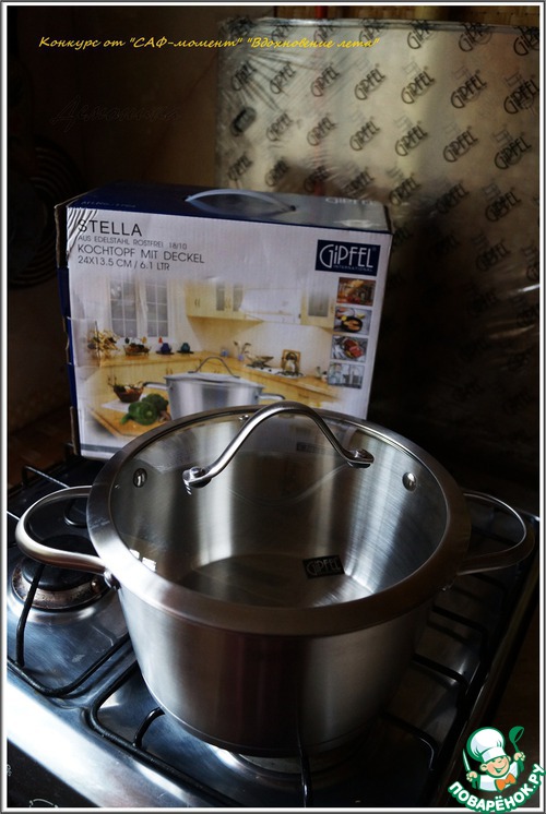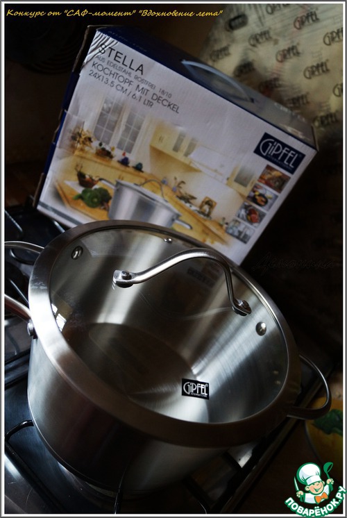 Кастрюлька просто потрясающая: с толстым дном, тяжёлая и просто шикарная! Девочки, 6 литров!!! Я думала, что будет около 2-х. Спасибище организатором конкурса огроменное! Признаюсь, я не считаю себя конкурсабельным человеком и в конкурсах участвую редко, поэтому это мой первый такой ОСНОВАТЕЛЬНЫЙ приз. Кстати, участвовать вовсе не собиралась: загнала рецепт, а его автоматом кинуло на страницу конкурса: он подходил по тематике. Ну и ладно, подумала я, пусть будет так, и поставила назначение НА КОНКУРС. И не парилась вовсе, ожидая результатов. Поэтому что удивление было безмерным - это ничего не сказать! Тем более, мне казалось, что куриный бульон вовсе не в тему. Так что ещё раз всем спасибо: организаторам, вдохновителям, тем кто голосовал и поддерживал и тем, кто уже попробовал! Отдельное спасибо Jane.