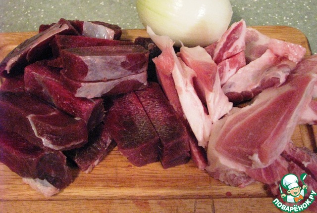 Мясо для фарша: лосятина и свинина. Лосятину можно смело заменить на говядину.
