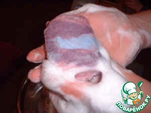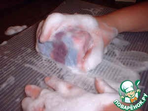 Продолжаем сжимать и гладить, пока не станет образовываться устойчивая мыльная пена