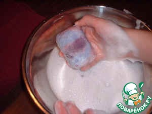 Теперь можно тереть нашу заготовку сильнее - мыло уже дало обильную пену и никуда не убежит