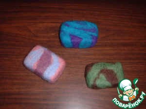 Оборачиваем подготовленное мыло чесаной шерстью со всех сторон