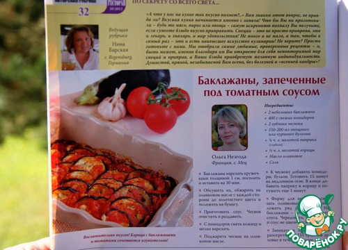 1. Олечке/Sugar за её рецепт "Баклажаны, запечённые в томатно-коричном соусе" https://www.povarenok.ru/recipes/show/67456/ (мы готовили их вместе на "Овощной неделе"! :