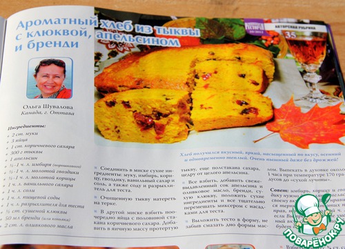 7. Оленьке/ХельгаС за "Ароматный хлеб из тыквы, с клюквой, апельсином и бренди" https://www.povarenok.ru/recipes/show/59872/, который мы пекли на "Рыжей неделе" год тому назад: