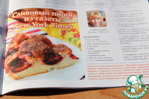 8. Ларочке/Ларек за знаменитейший "Сливовый пирог из газеты "New York Times" https://www.povarenok.ru/recipes/show/59743/, который был приготовлен 27 раз на сайте с отметкой "отлично" и был отмечен в журнале дважды, в рубрике и редактором, во вступительном слове: