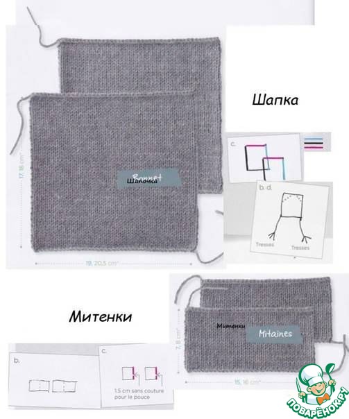 Набираем 34(37) петель и вяжем лицевой гладлью 7(8) см. В следующем ряду закрыть все петли. Точно так же вяжем вторую митенку. Собираем все торчащие нитки и аккуратно их прячем, сгибаем митенку пополам и сшиваем ее, оставляя отверстие для пальчика в 1,5 см.