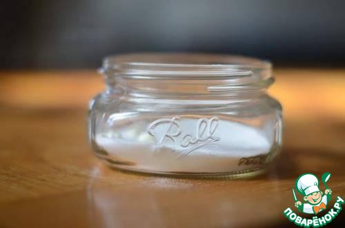 1. Берем в руки небольшую баночку и заполняем её содой, примерно 1/4 банки.
