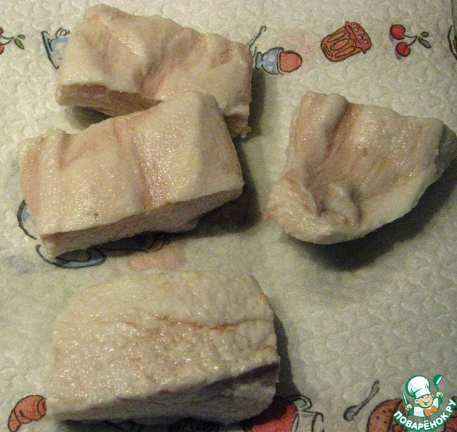 Свежее сало нарезать на куски