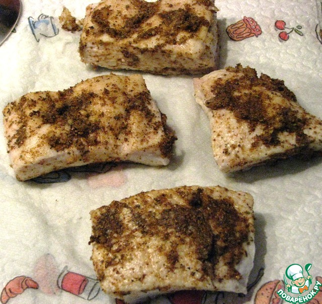 Сало достать из рассола, обсушить и хорошенечко натереть полученной смесью.