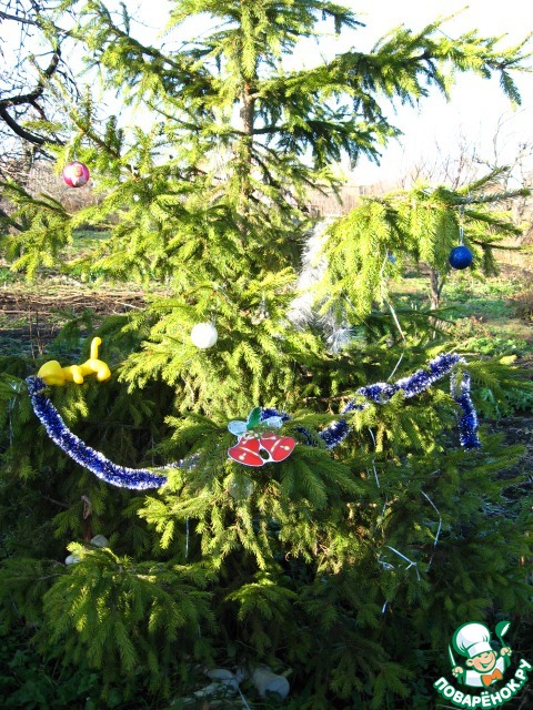 А ещё у нас полным ходом шла подготовка к встрече Нового года на природе - мы нарядили ёлку в огороде!