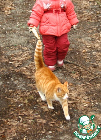 В июле появились на свет на маленьких чуда. Одно – серенькая девочка – её забрали в начале осени. Второе – рыжий мальчишка-хулиган. Когда мы его видели последний раз, он был маленьким котенком. А теперь, почти взрослый кот, но игривый, как малыш. Гуляя с нами, очень далеко уходил от дома. И всё время шёл рядом, как на поводке!