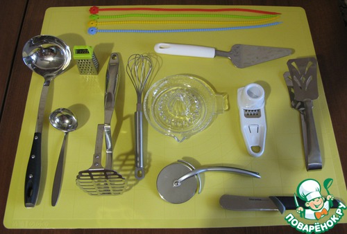 Когда я переезжала жить к своему мужу (к слову сказать в другой город - за 600км от родного дома), то конечно взяла с собой приданое в виде всяких сковородок и кастрюль, но этого было не достаточно, поскольку у него на холостяцкой кухне был очень скромный набор самой необходимой (для него) утвари. Вначале у нас на кухне было не очень уютно – то того не хватало, то другого под рукой не оказывалось… Но в этом, как оказалось, тоже нашлись свои плюсы, так как для каждой хозяйки нет ничего приятней, чем самой выбирать кухонные принадлежности для своих кулинарных нужд, чем я и занялась. Конечно, все приобреталось не в один день, а постепенно, как говорится, по хозяйственным нуждам и материальным возможностям, и вот некоторые вещички, которыми я уже могу похвалиться: