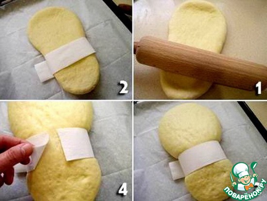 Затем часть теста раскатать в жгуты, другую часть теста вырезать в форме колосков.