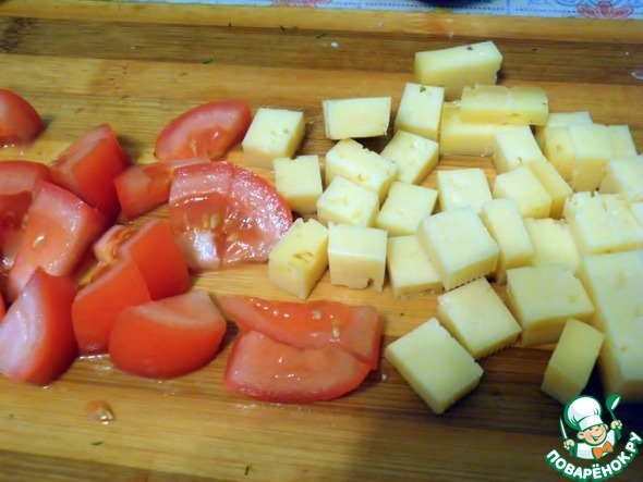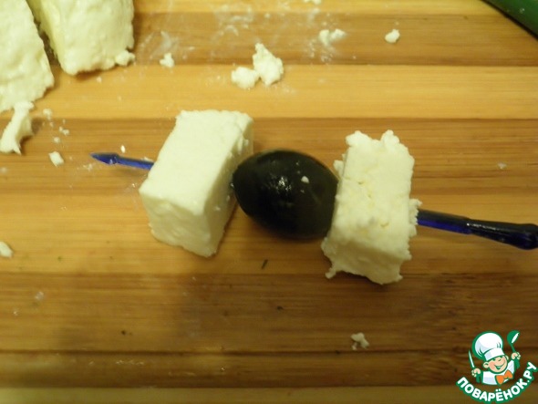 1. Помидоры-твердый сыр. Порезать кубиками и по очереди наколоть на шпажку: помидор-сыр-помидор-сыр