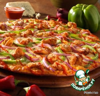 Пицца (от итальянского pizza) — итальянское национальное блюдо, в виде круглого открытого пирога, покрытого помидорами и расплавленным сыром (как правило, моцареллой). В пиццу могут впекаться различные начинки (мясо, ветчина, салями, морепродукты, овощи, фрукты, грибы, зелень и другие).[cut]