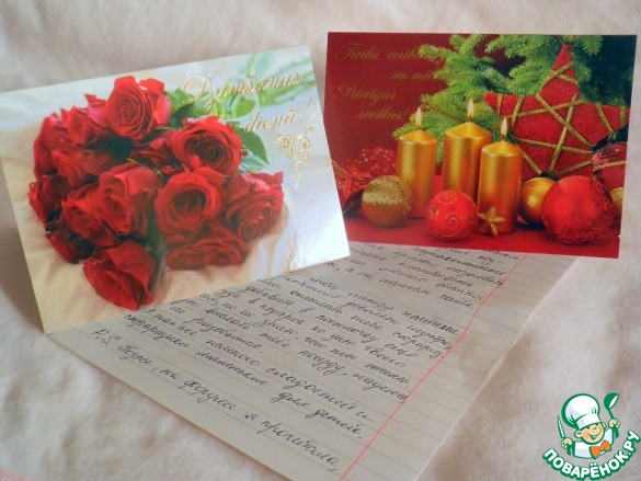 Две чудесные открыточки с поздравлениями к Новому году и Дню рождения и очень теплое, душевное письмо - как же все таки приятно читать бумажные письма написанные от руки, а не сухие смс-ки