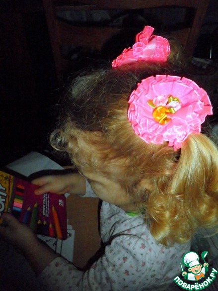 Последняя часть подарка предназанчалась для дочурки. Что она быстро и безошибочно поняла, в итоге сфотографировать присланные Элей заколочки я смогла только уже на "модели" так как ждать фотосесию Маша отказалась наотрез. Да и как же тут устоять - ведь они любимого цвета -розового