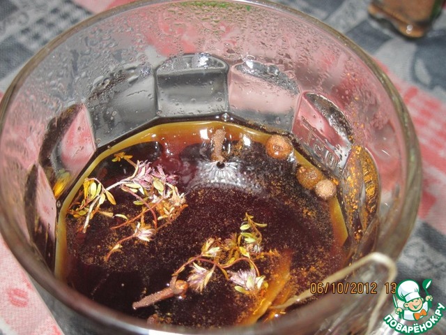 Итак: вода 0,5л,2пакетика чая,чабрец (щепотка),гвоздика 2-3 шт,перец душистый горошком 5-6шт,корица молотая(на кончике ножа),перец красный молотый острый жгучий (на кончике ножа,можно и чуть больше),водка 50 мл.Завариваем чай,добавляем все специи и водку ,настаиваем минут 10.Пить горячим маленькими глотками.Если пить на ночь,то и способствует быстрому засыпанию,благодаря наличию чабреца.