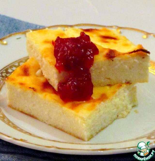 3. Выкладываем творожную массу в форму и отправляем в разогретую до 180С духовку на 40-50 минут.