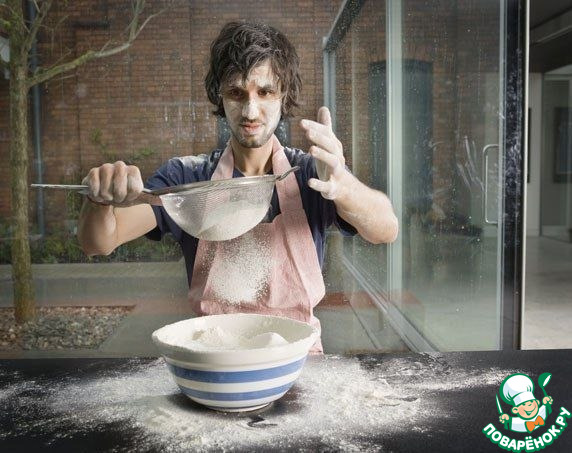 7. Пора доставать муку, насыпьте 200 г в стакан, затем высыпьте в таз с желтками. Оставшееся 800 г соберите аккуратно обратно в пакет.
