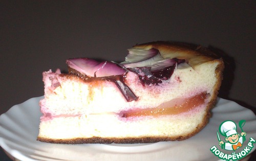 Творожная запеканка от Dashulia https://www.povarenok.ru/recipes/show/545 , это именно тот рецепт, который я очень долго искала для себя. Та самая, детсадовская запеканка, политая сметанкой, ммм... Словами это не передать, надо пробовать! В этом рецепте я для украшения использовала сливы, на вкус это совсем не повлияло.