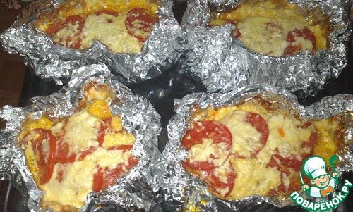 подаю к столу прямо в "лодочках" из фольги, на гарнир отварной картофель с зеленью. Приятного аппетита!!!