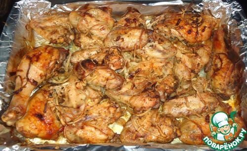 Куриные голени и крылья маринованные в минеральной воде с уксусом, а-ля "куриный шашлык в духовке". Думаю, каждый для себя выберет свой лакомый кусочек. Угощайтесь!
