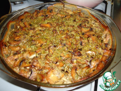 И на последок, "запеченные жареные пельмени с грибами в сметанно-сливочной заливке с зеленью". Раз в год, наверное можно себе позволить столь "вредное" блюдо.