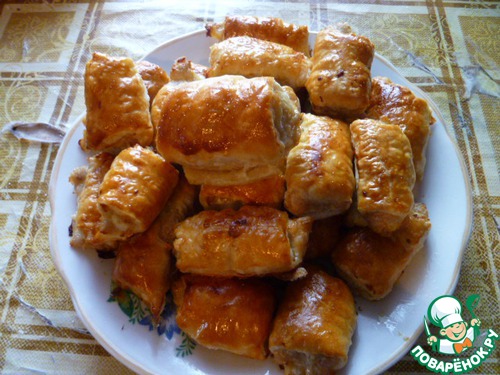 Варианты выпечки из слоеного дрожжевого теста и котлетного фарша.