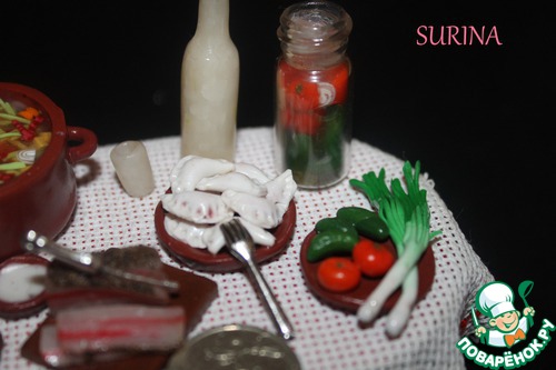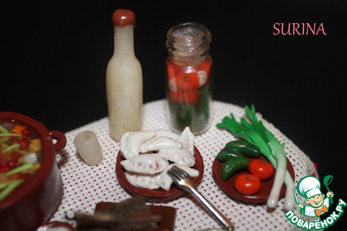 Это все из полимерной глины (пластика), ну сама баночка, вилка и нож - это единственное, что покупное) а наполнение это уже мое.