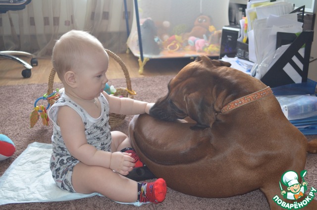 Ну вот,слава Богу,они подружились.Я так волновалась,что собака будет ревновать или будет относиться к Ваньке как-то не чутко...Она же у нас лошадь бестолковая))) Носится по квартире со слоновьей грацией,сшибая все на своем пути.Все думает,что она до сих пор маленький щеночек..Ее и заносит постоянно на поворотах(конечно,когти стричь не дает,а обкусывает себе их плохо-вот по ламинату и скользит).А еще хуже-когда она радуется- то начинает лупить во все стороны своим хвостом(а это очень ощутимо,и у меня,от ее хвоста,пару раз на ногах были синяки), то ушами хлопает(эффект тот же)[cut]